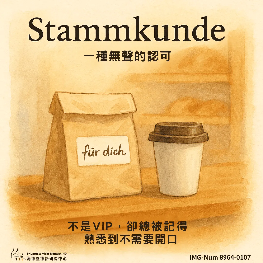 📌 所以 Stammkunde 的意思就是:「固定來消費的顧客」:不是第一次來的路人,不是偶爾光顧的客人,而是你那個「每天早上都會出現的老客戶」。