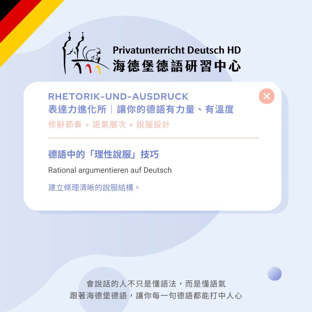 純理性容易冷,純情緒容易失控。德語中真正有說服力的表達,往往來自理性結構與情緒語氣的精準配比。本篇帶你理解德語如何在不失專業的前提下,適度加入情緒溫度,讓說服既可信,又有人味。