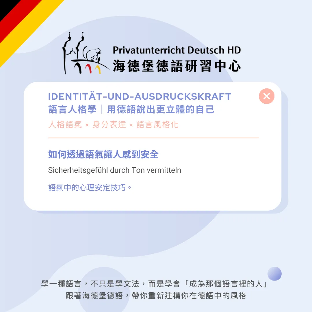 有些人一開口,就讓人願意多說一點;有些人說得再合理,卻讓人下意識防備。本篇帶你理解「安全感語氣」的形成條件,學會用德語的結構、節奏與站位,讓對方在語言中感到被尊重、被接住,而不是被評估。