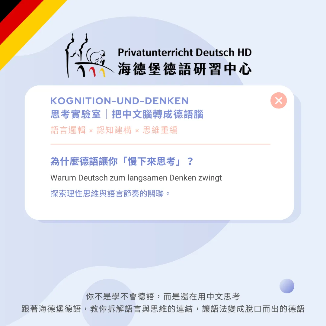 很多學習者覺得德語說起來「卡卡的」「不流暢」,其實這正是德語的設計目的。本篇帶你理解:為什麼德語會逼人慢下來,以及這種「慢」,如何培養出更精準、更有深度的思考能力。
