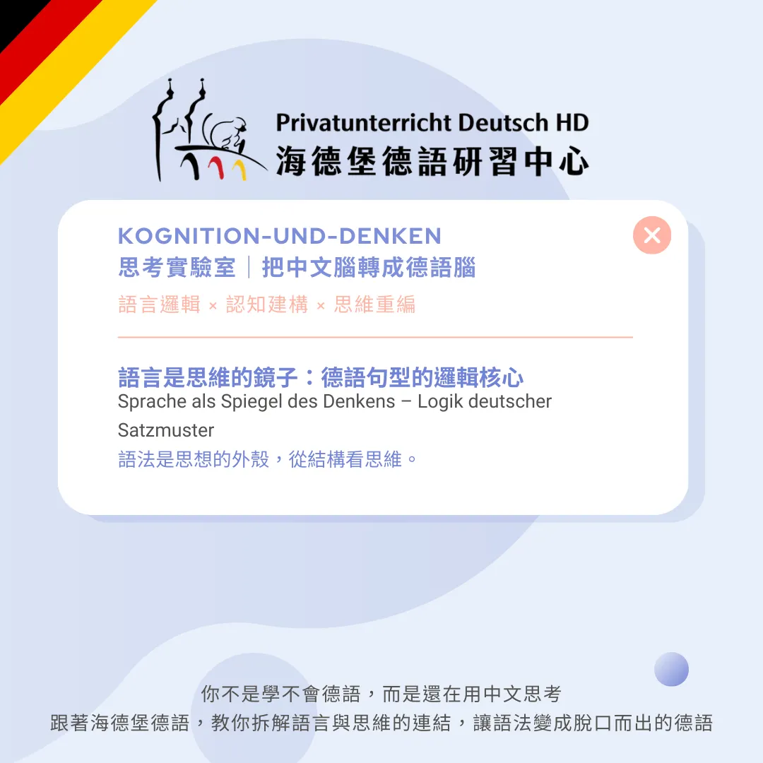 很多人以為說話是「想到一個字就接一個字」,但在德語裡,句子其實是意識被結構化的結果。本篇帶你理解德語如何從單字開始,一層一層建構出可控、可預測的思考流程。