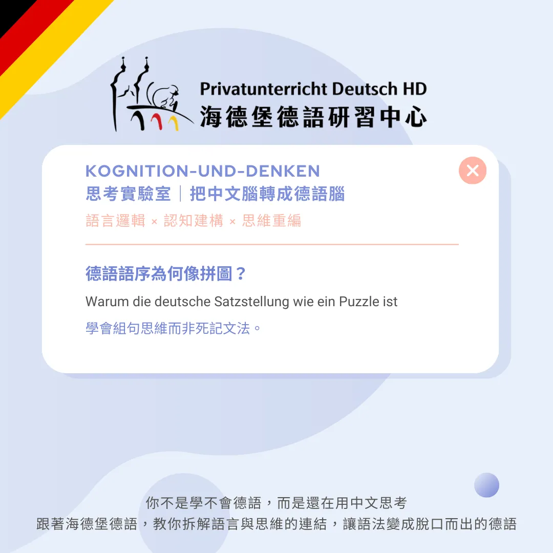 德語語序常讓人覺得破碎、繞路,其實它更像一個拼圖系統。本篇帶你理解德語語序背後的認知邏輯,學會「組句思維」,而不是死記位置規則。