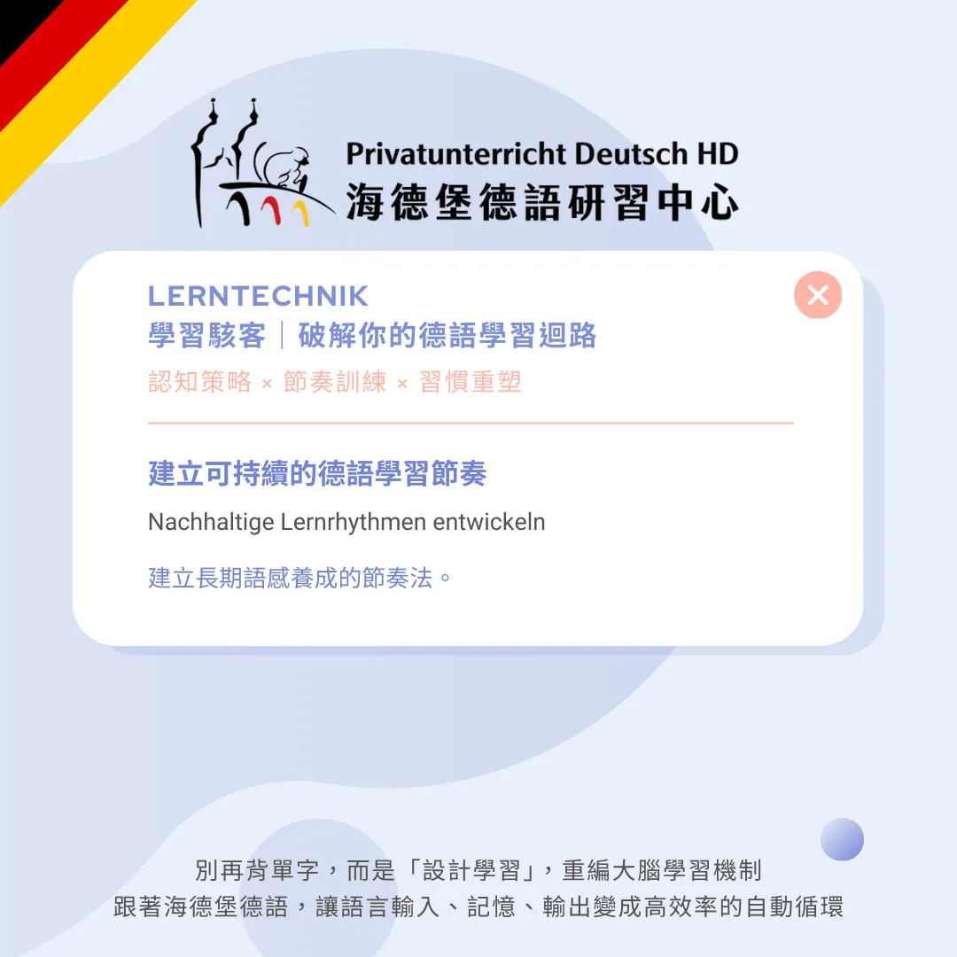 很多人以為學習要靠爆發力,但語言其實更需要節奏感。本篇帶你理解為什麼「過度努力」反而讓學習提早結束,並教你如何設計一套符合大腦與生活節拍的德語學習節奏,讓語感穩定累積。