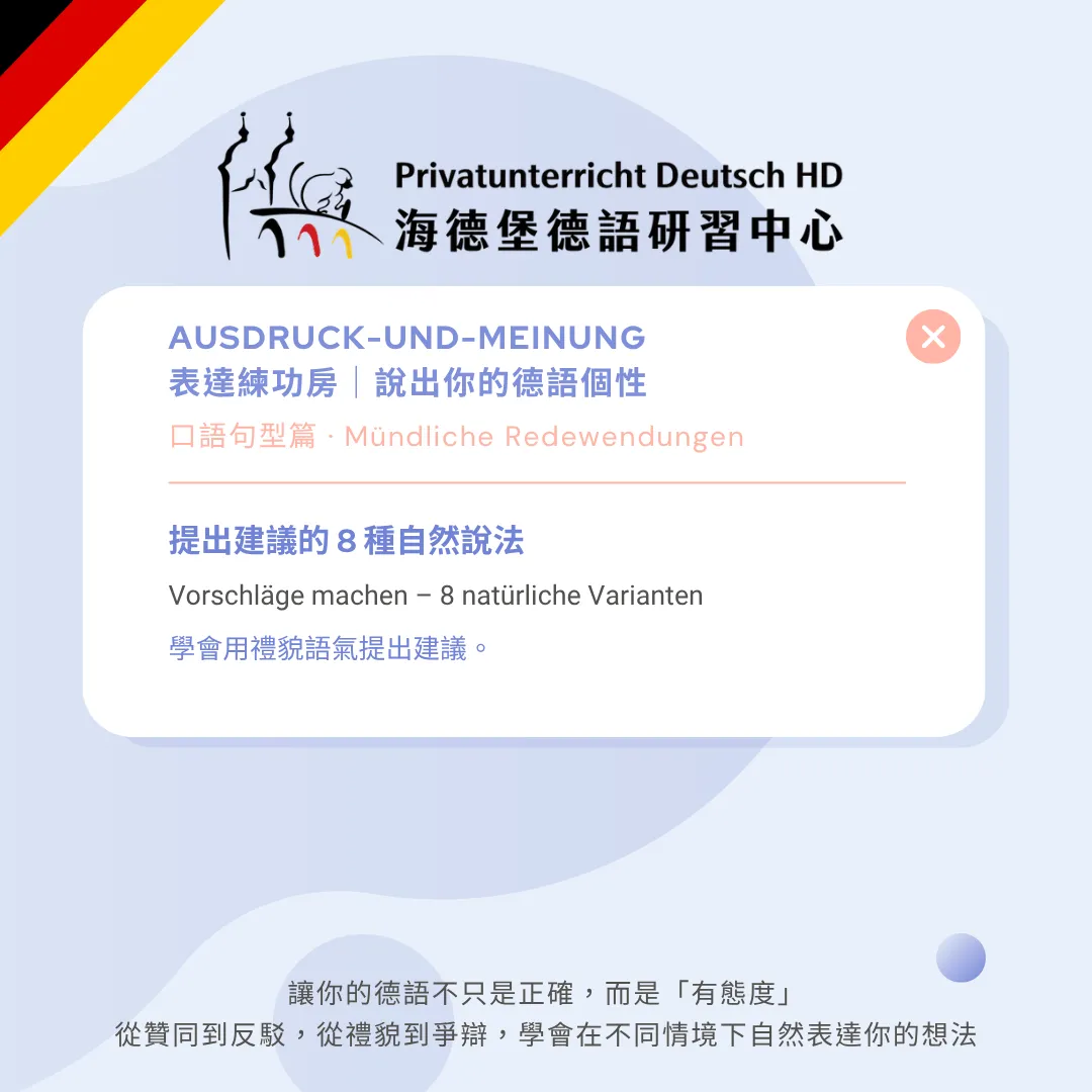 提出建議的 8 種自然說法 Vorschläge machen – 8 natürliche Varianten