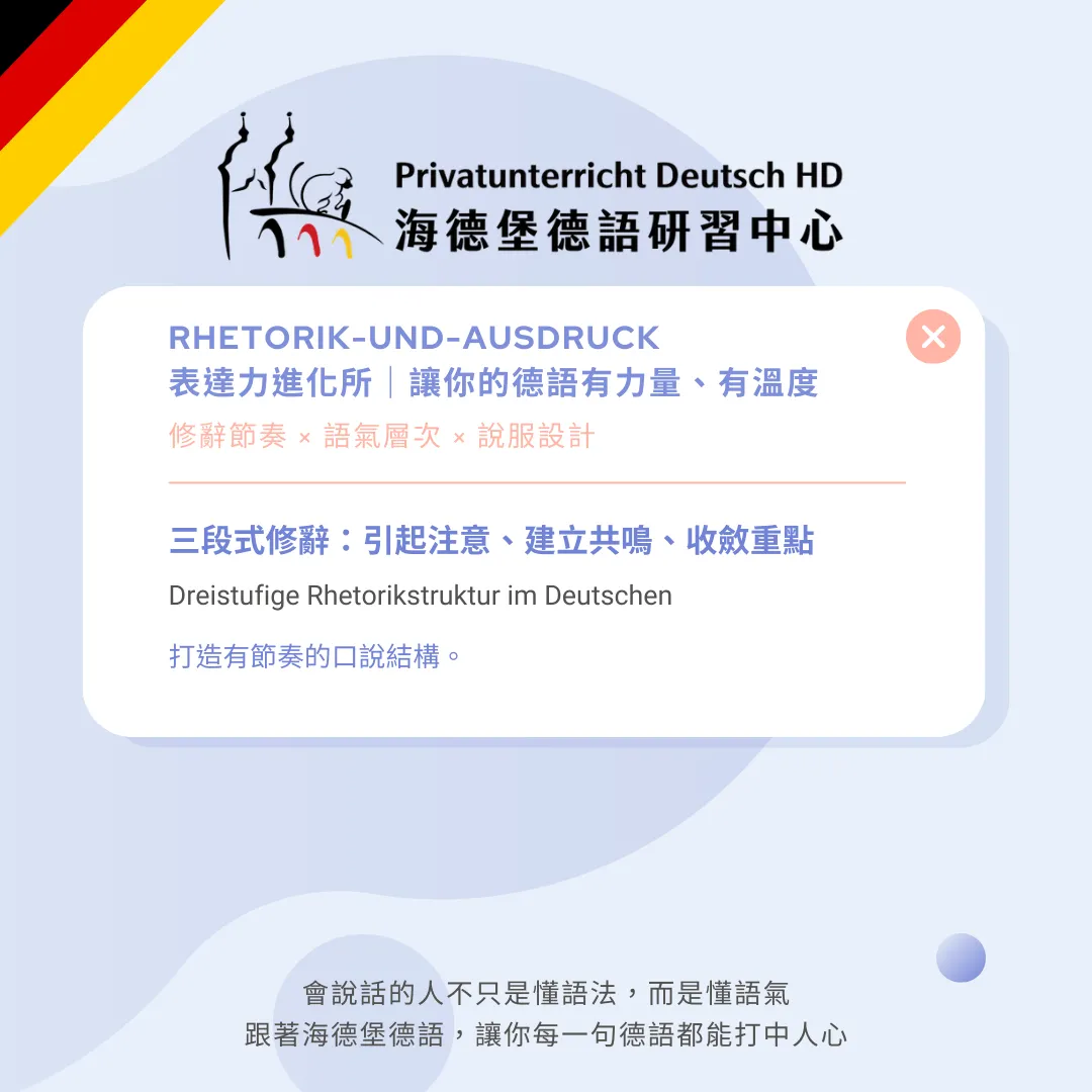 三段式修辭:引起注意、建立共鳴、收斂重點 Dreistufige Rhetorikstruktur im Deutschen