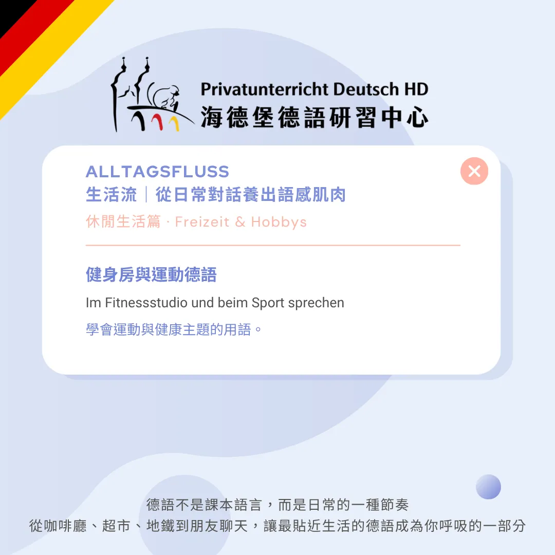 但健身房德語其實非常「低語言密度」,多半只需要短句與關鍵字。