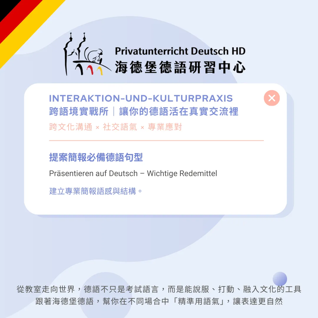 很多人在德語簡報時,其實內容準備得很完整,