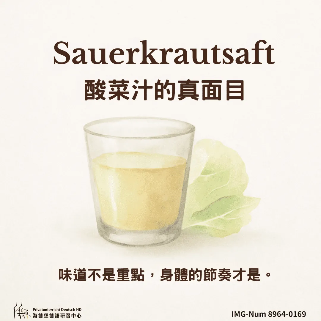 但 Sauerkrautsaft 的存在,遠遠超越「喝或不喝」這麼簡單,它反而像是一個文化的切面:關於德國人如何看待身體、規律、生活節奏、自然療法,以及「味道」在文化中扮演的角色。