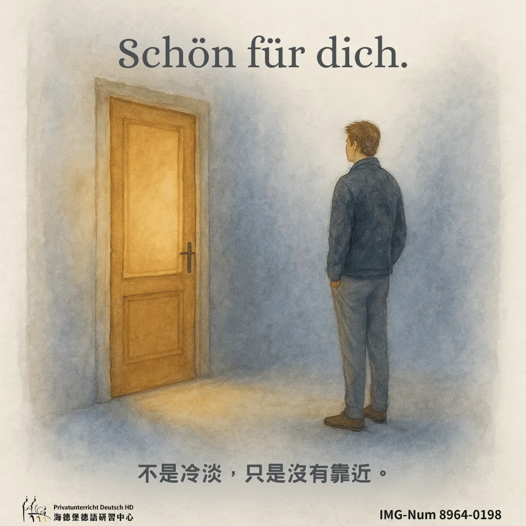 但真正進到德語日常裡,這句話的重量,往往不在「schön」,而是在那個界線畫得很清楚的「für dich」。