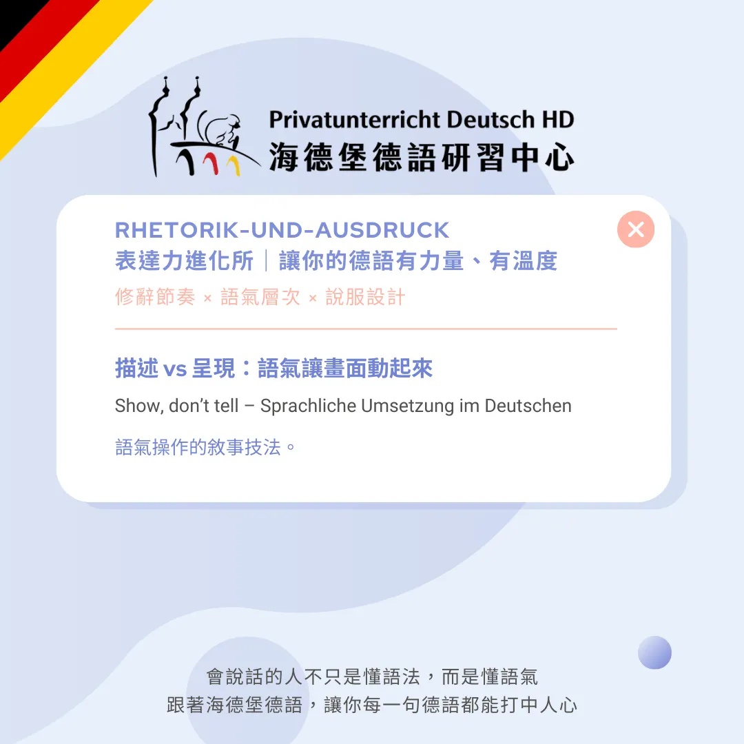 描述 vs 呈現:語氣讓畫面動起來 Show, don’t tell – Sprachliche Umsetzung im Deutschen