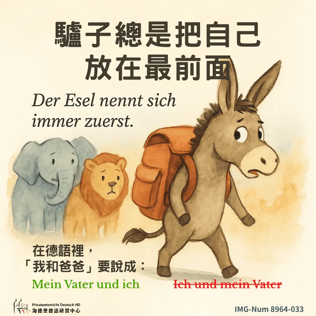 從「Ich und mein Vater」到「Mein Vater und ich」這樣一個小調整,說的不是誰先誰後,而是「在語言裡尊重他人」的微妙姿態。