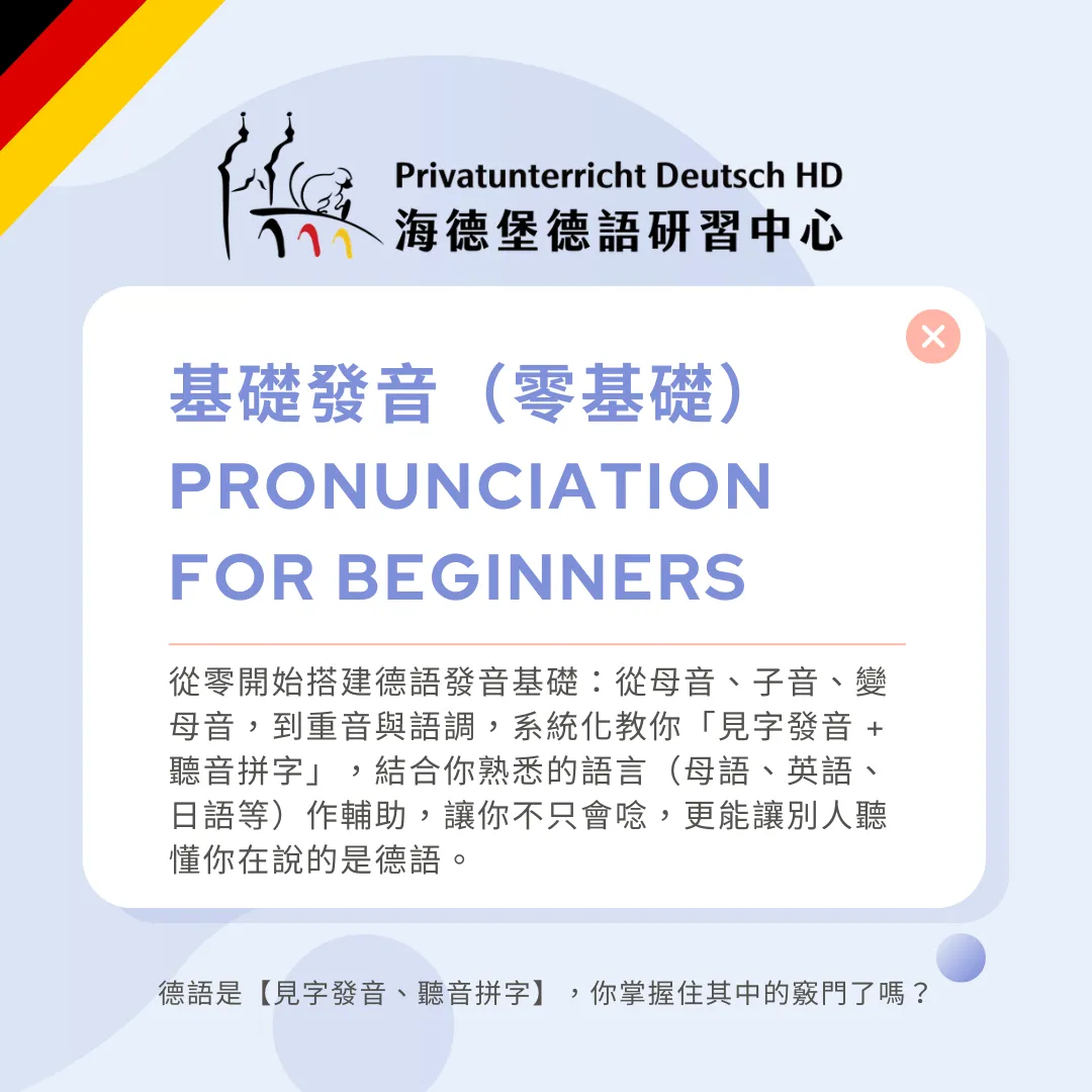 從零開始搭建德語發音基礎:從母音、子音、變母音,到重音與語調,系統化教你「見字發音 + 聽音拼字」,結合你熟悉的語言(母語、英語、日語等)作輔助,讓你不只會唸,更能讓別人聽懂你在說的是德語。